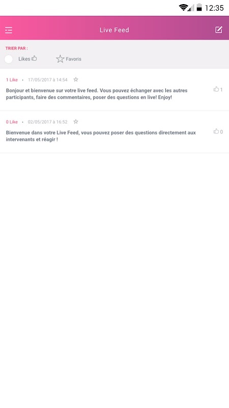 *Live feed : le Live Feed permet aux invités de participer au débat en posant des questions à l’intervenant, le tout grâce à leur smarthphone avec la possibilité de diffusion sur un wall dans la salle. Ils « likent », « dislikent » les commentaires. Les questions sont modérées puis éditées.