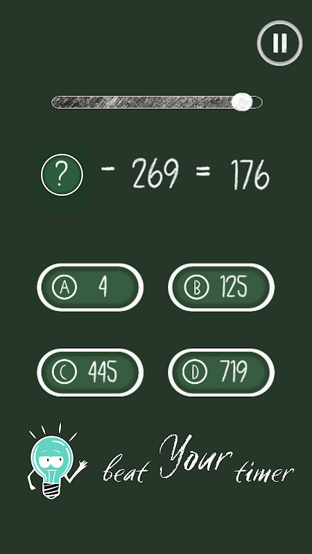 ไขโจทย์บวก ลบ คูณ และหารง่ายๆ ภายในเวลาที่กำหนด ยิ่งตอบเร็วเท่าไหร่ คะแนนก็ยิ่งสูงเท่านั้น! ท้าทายตัวเองทุกวันและพัฒนาความเร็วในการคำนวณในใจไปพร้อมกับความสนุก