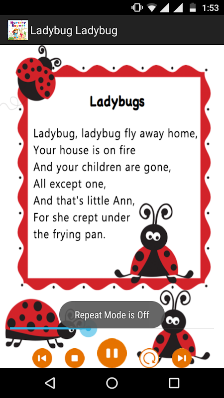 • Kids learn rhymes in a fun way. Easy to use and entertaining! This app keeps them busy and hooked on.