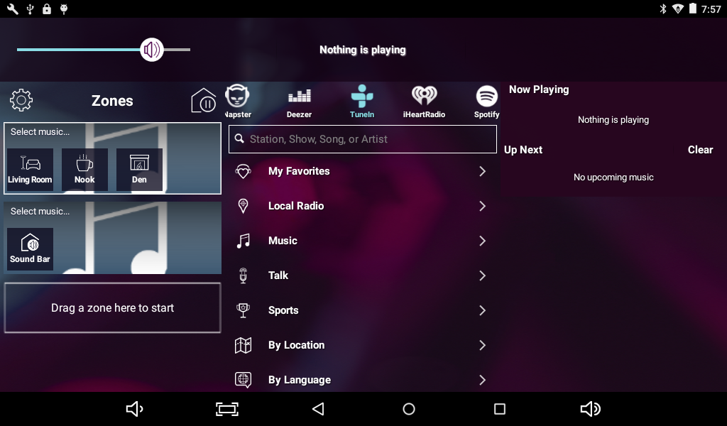 แอปพลิเคเครื่องเล่นทำให้คุณสามารถควบคุมและช่วยให้คุณสามารถปรับแต่งการตั้งค่าเพื่อให้เหมาะกับความต้องการของคุณ อย่างรวดเร็วและง่ายดายเลือกตำแหน่งที่คุณต้องการที่จะฟังและสิ่งที่คุณต้องการจะได้ยิน เล่นเพลงที่แตกต่างกันในห้องพักทุกห้องหรือโซนกลุ่มร่วมกันเพื่อออกอากาศเพลงเดียวทั่วทั้งบ้าน - อำนาจอยู่ในมือของคุณ