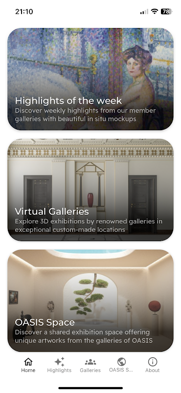 ออกแบบมาโดยเฉพาะสำหรับนักสะสมและผู้ชื่นชอบงานศิลปะ แพลตฟอร์มดิจิทัลที่ปฏิวัติวงการนี้มอบประสบการณ์ที่ไม่เหมือนใครในการค้นหา เรียนรู้ และรวบรวมงานศิลปะโดยการสำรวจพื้นที่ 3 มิติของแกลเลอรีที่มีชื่อเสียง