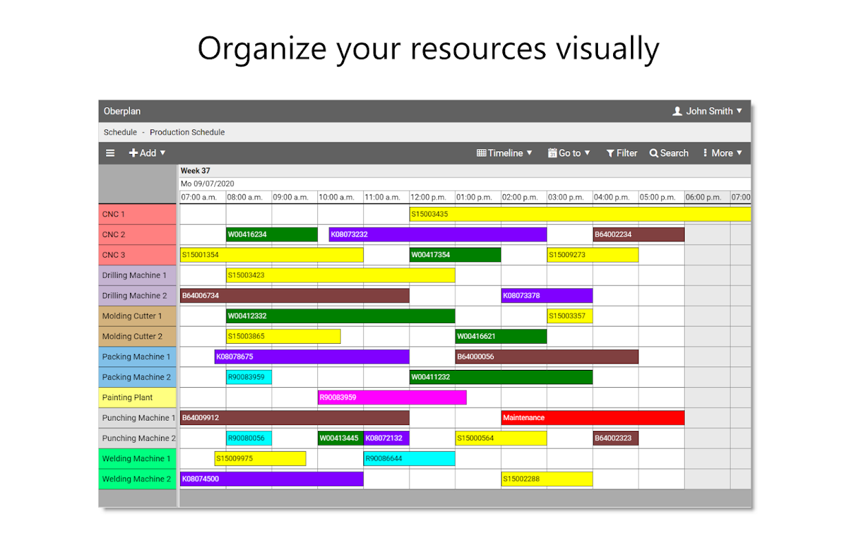 ใช้ Oberplan เพื่อกำหนดเวลาทรัพยากรเช่นพนักงานห้องพักเครื่องจักรหรืออุปกรณ์