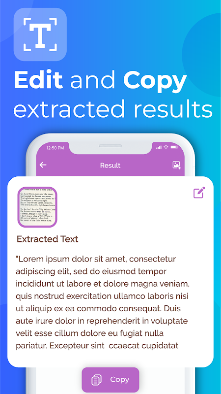 แอพแยกข้อความสำหรับ Android นี้สามารถใช้แปลงเอกสารสิ่งพิมพ์ เช่น หนังสือ หนังสือพิมพ์ หรือนิตยสาร ให้เป็นรูปแบบดิจิทัล ช่วยให้ผู้ใช้สามารถค้นหาและแก้ไขข้อความในเอกสารได้อย่างง่ายดาย