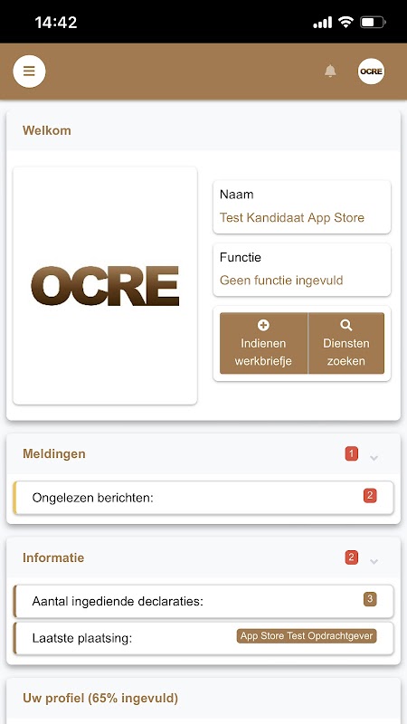 OCRE Connector ได้รับการพัฒนาเป็นพิเศษสำหรับคุณในฐานะมืออาชีพที่ทำงานที่ OCRE ในฐานะมืออาชีพ คุณสามารถดูข้อมูลทั้งหมดที่เกี่ยวข้องกับงานของคุณในแอปนี้ได้อย่างง่ายดาย ดูรายละเอียดส่วนบุคคลของคุณ อัปโหลด CV ดูการนัดหมาย ดูตารางเวลา กรอกประกาศ และปรับความพร้อมของคุณ ส่งต่อการตั้งค่าของคุณเกี่ยวกับการลาและความปรารถนาสำหรับงานมอบหมายครั้งต่อไป นอกจากนี้ เอกสารของคุณ เช่น สลิปเงินเดือน ใบแจ้งหนี้ และสัญญาจะถูกเก็บไว้อย่างปลอดภัยในแอป และคุณสามารถดูได้ตลอดเวลา