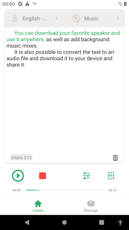 •ดาวน์โหลดและแบ่งปันข้อความใด ๆ เป็นเสียง (mp3 / aac / flac)