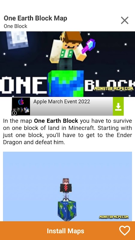 One block Maps for Minecraft รุ่นเก่า