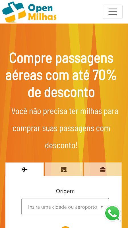 A OpenMilhas é um aplicativo que busca passagens aéreas tanto por dinheiro quanto por milhas.