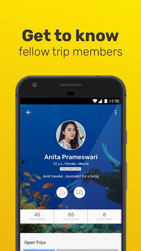 Travel application that lets you join open trips held by trip leaders to various destinations in Indonesia. Meet new friends and get connected in no time even before your trip, enabling you to make the most of your upcoming adventure. You can also create your own trip and be the trip leader yourself, as you guide your members while enjoying your trip.
