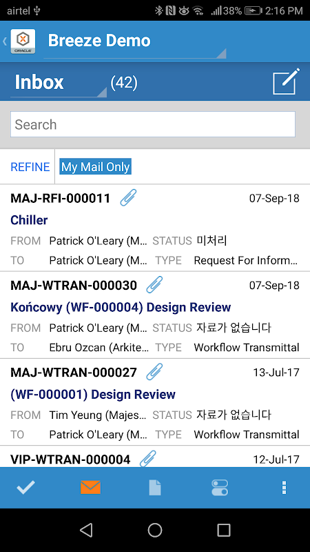 The new Oracle Aconex Mobile application is now available! It’s got all the Mail & Docs functionality you’d expect, plus the ability to access drawings straight from the document register, and a refreshed and more intuitive look and feel.