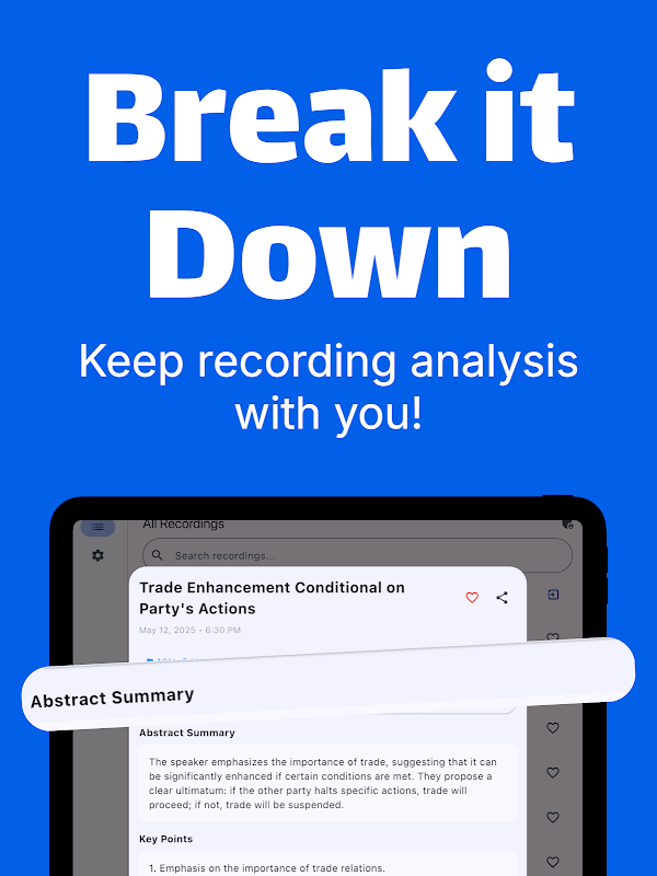 Orator ใช้ประโยชน์จาก พลังของ AI ที่จะเพิ่มประสิทธิภาพกระบวนการจดบันทึกของคุณ ให้คุณไม่พลาดรายละเอียดสำคัญอีกต่อไป เปลี่ยนเสียงของคุณให้เป็นข้อความที่เป็นระเบียบและค้นหาได้ และปลดล็อกประสิทธิภาพการทำงานขั้นใหม่ด้วย Orator