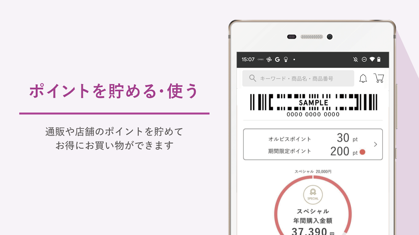 คุณสามารถรับคะแนนโดยใช้แอปเมื่อช้อปปิ้งที่ร้านค้าที่จัดการโดยตรงของ ORBIS หากคุณลงทะเบียนเป็นสมาชิกภายในแอปก็สามารถใช้ซื้อสินค้าได้