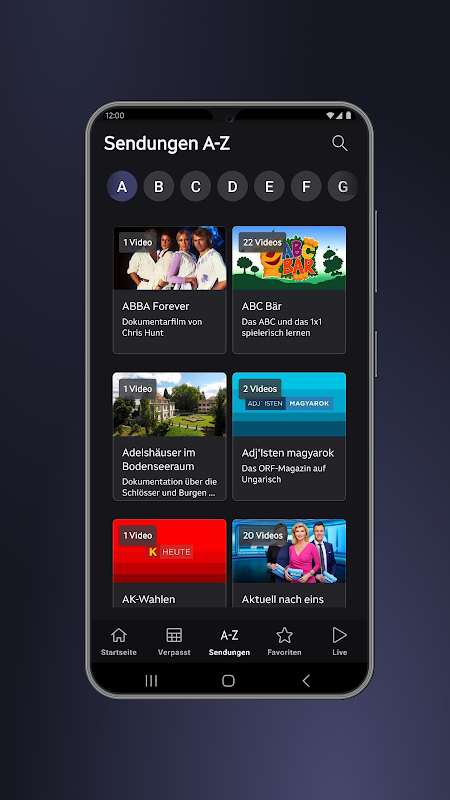 ข้อเสนอการสตรีมสดจาก ORF Live ซึ่งรวมอยู่ในแอปจะสตรีมช่องทีวี ORF สี่ช่องเกือบอย่างต่อเนื่อง หากคุณพลาดจุดเริ่มต้นหรือพลาดการออกอากาศทั้งหมด คุณสามารถรับชมสตรีมสดบน ORF Live ได้ภายใน 24 ชั่วโมงต่อมา และติดตามความรู้สึกถ่ายทอดสด