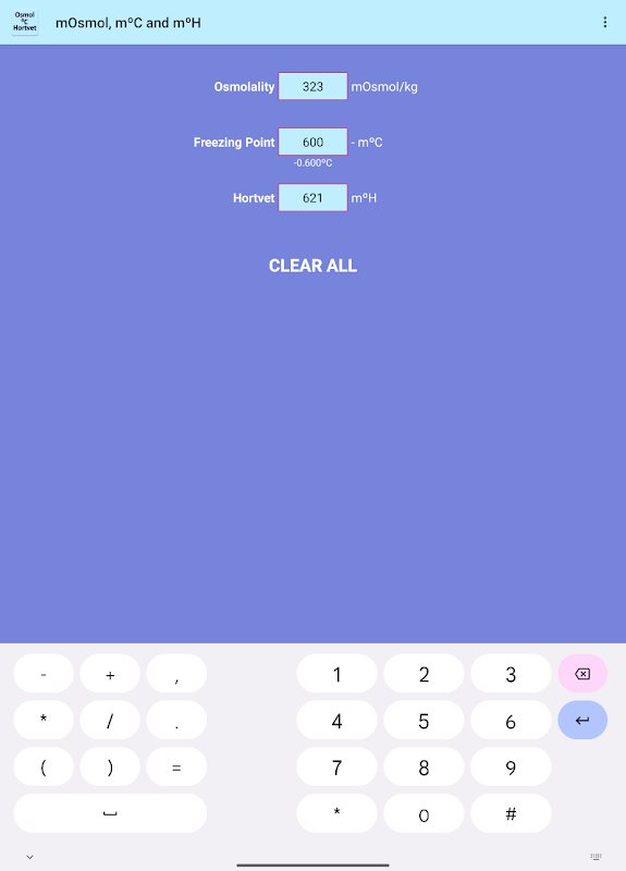 แอพนี้จะแสดงให้คุณเห็น 3 ค่า; ออสโมลาลิตี จุดเยือกแข็ง และฮอร์ตเวท