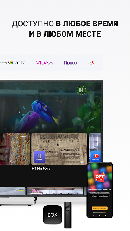 แอป OTTCLUB มีให้บริการบนสมาร์ททีวี: LG และ Samsung รวมถึงบน Android TV ตั้งค่าสมาร์ททีวีใน 1 นาทีบนทีวี Samsung และ LG คุณต้องติดตั้งแอปพลิเคชั่นทีวีออนไลน์อย่างเป็นทางการของ OTTCLUB ใน Samsung App หรือ LG Store เพื่อเชื่อมต่อ