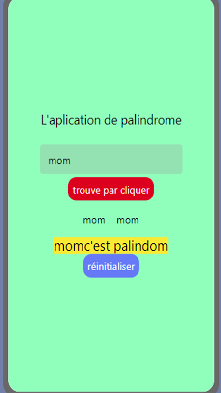 The app will take the user value and generate the value revered and the original value while checking if it a palindrome or not.