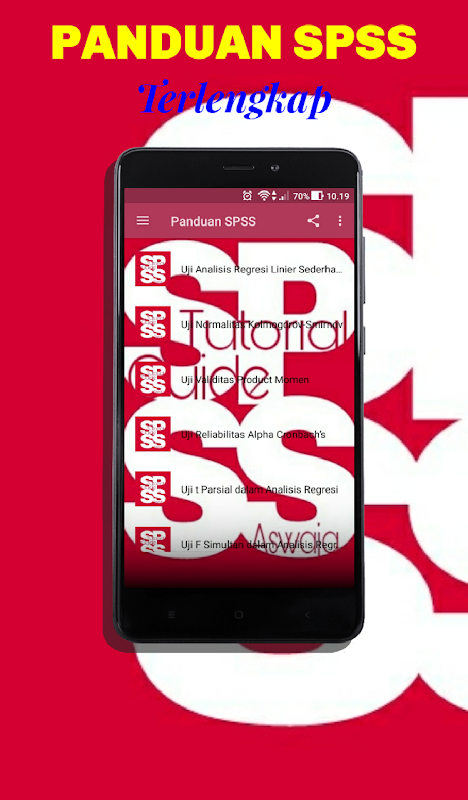 aplikasi ini dibuat atas inisiatif pengguna spss untuk membantu dalam memahami langkah kerja spss. aplikasi ini tidak terafiliasi dengan perusahaan manapun. tutorial yang ada dalam aplikasi ini diantaranya :