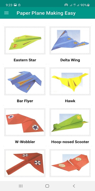 แอพนี้ "Paper Plane Making Easy" มี 26 บทช่วยสอนทีละขั้นตอนเกี่ยวกับวิธีการทำเครื่องบินกระดาษที่สามารถบินได้ในอากาศ คุณเพียงแค่ต้องเลือกโมเดลเครื่องบินกระดาษและทำตามคำแนะนำง่ายๆ ในแอพนี้ โมเดลเครื่องบินกระดาษทั้งหมดในแอพนี้คือ: