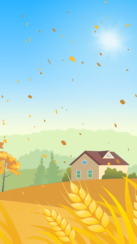 An illustrated autumn landscape with parallax scroll and chaning sky, sun, moon and landscape colors according to time of day (custom time or real time). The free version is fully functional but most settings are locked. In the full version you get access to all settings, including the real time mode.