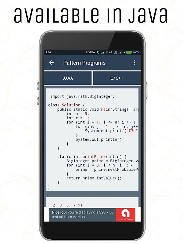 The best application to learn pattern printing using Java and C/C++.