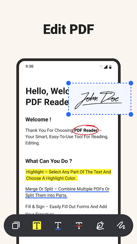 ดาวน์โหลด PDF Reader เลยตอนนี้และสัมผัสกับวิธีที่ชาญฉลาดกว่าในการทำงานกับเอกสาร — จากอุปกรณ์ของคุณโดยตรง