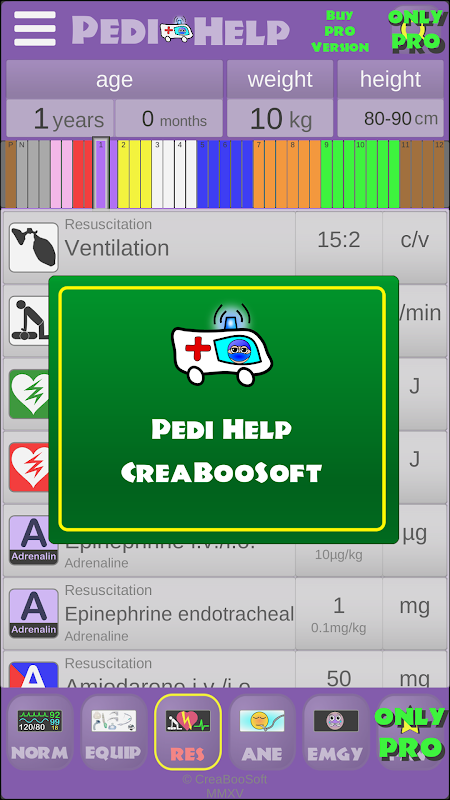 PediHelp เป็นผู้ช่วย-app ที่ดีที่สุดสำหรับกรณีฉุกเฉินเด็กและการระงับความรู้สึก กลุ่มอายุที่แตกต่างกันจะมีเครื่องหมายปกติรหัสสี เพียงแค่เลื่อนนิ้วของคุณไปตามขนาดสี ข้อมูลทั้งหมดจะถูกคำนวณได้ทันที