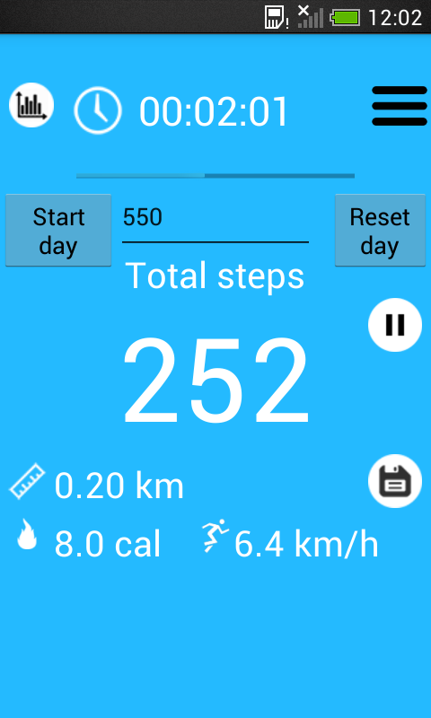 แอปพลิเค pedometer คือใช้งานง่ายมาก เมื่อคุณกดปุ่ม "เริ่มต้นวันใหม่" คุณสามารถลด app ที่ใส่ไว้ในกระเป๋าของคุณหรือดำเนินการโดยใช้โทรศัพท์มือถือหรือแท็บเล็ตของคุณในขณะที่คุณมักจะทำ