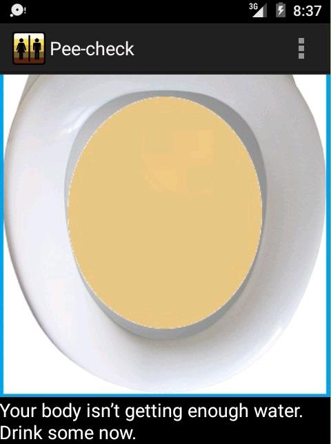 Pee Check helps you to see if you drink enough water by looking at the color of your urine, and then determine if you drink enough water, if you are de-hydrated or if you need a doctor.