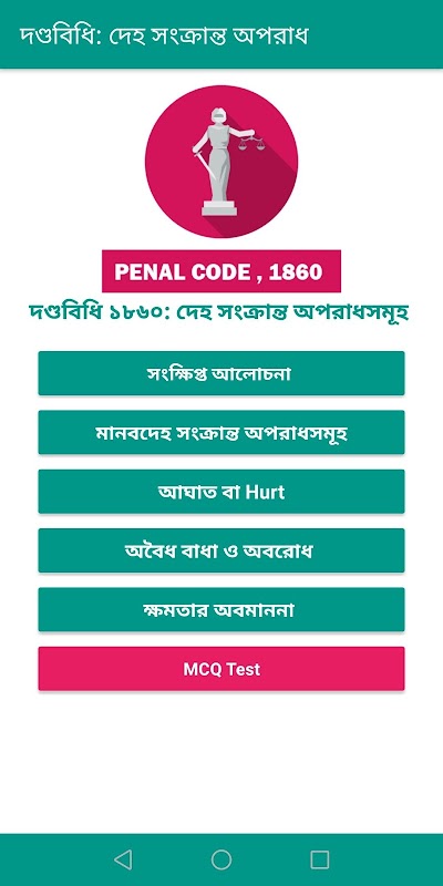 This is the app of Penal Code for the preparation for Bangladesh Bar Council and Judiciary exam. We have included all the lectures and related MCQ test.