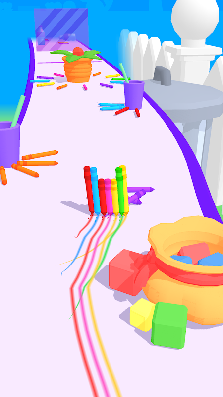 Follow the path collect your pens and paint a beautiful picture at the end! But be careful and avoid obstacles or you will lose your pens!