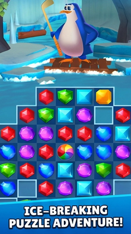 สลับและจับคู่อัญมณีหลากสีสันเพื่อเคลียร์ด่านและช่วยเหล่าเพนกวินสุดน่ารักผจญภัยต่อไป