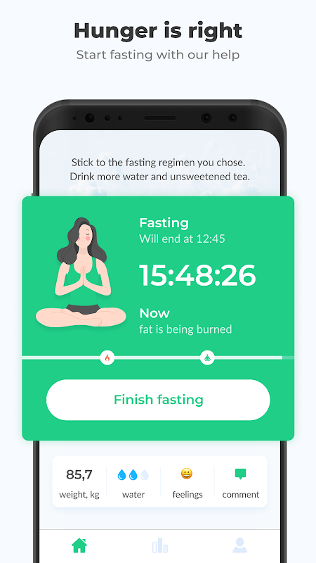 จะช่วยให้คุณพัฒนาโปรแกรมที่กำหนดเองของการอดอาหารและการกู้คืนเป็นระยะซึ่งจะช่วยให้คุณลดน้ำหนักได้อย่างรวดเร็วโดยไม่เป็นอันตรายต่อสุขภาพของคุณ ไม่มีอาหารหรือเคาน์เตอร์แคลอรี่ แอพนี้ยังช่วยให้คุณมีร่างกายที่แข็งแรงและปรับปรุงความเป็นอยู่ของคุณ ผลลัพธ์จะปรากฏให้เห็นหลังจากผ่านไปหนึ่งสัปดาห์