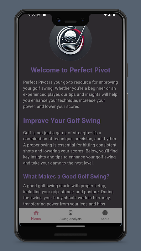 Perfect Pivot คือคู่หูที่ดีที่สุดสำหรับนักกอล์ฟทุกระดับฝีมือ ออกแบบมาเพื่อช่วยให้คุณพัฒนาวงสวิง ปรับแต่งเทคนิค และลดคะแนนของคุณ ไม่ว่าคุณจะเป็นผู้เล่นมือใหม่หรือมีประสบการณ์ แอปของเราใช้เทคโนโลยี AI ที่ทันสมัยเพื่อให้การวิเคราะห์วงสวิงส่วนบุคคล ข้อเสนอแนะที่นำไปใช้ได้จริง และเคล็ดลับจากผู้เชี่ยวชาญเพื่อยกระดับเกมของคุณไปอีกระดับ