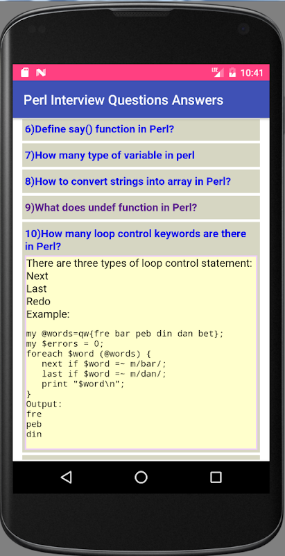 app นี้มี 104 Perl คำถามสัมภาษณ์และคำตอบ