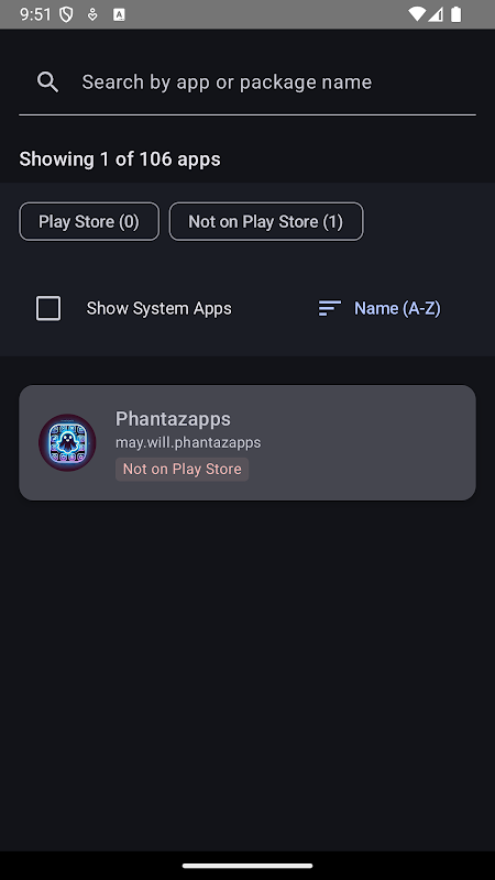 Phantazapps นำเสนอการเปลี่ยนแปลงที่ไม่เหมือนใครในการจัดการแอพที่คุณติดตั้ง! เครื่องมือที่เรียบง่ายและใช้งานง่ายนี้จะสแกนอุปกรณ์ของคุณเพื่อหาแอปที่ติดตั้งและตรวจสอบว่าแอปเหล่านั้นยังมีอยู่ใน Google Play Store หรือไม่ เหมาะสำหรับทุกคนที่ต้องการให้แน่ใจว่าแอปของพวกเขาจะไม่หายไปในอากาศ