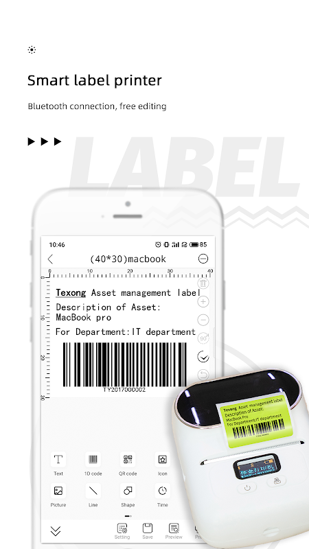 Phomemo-M110 เป็นซอฟต์แวร์การพิมพ์และแก้ไขฉลากอัจฉริยะ เชื่อมต่อแอพกับเครื่องพิมพ์ผ่าน Bluetooth ของโทรศัพท์มือถือการแก้ไขจะทำได้อย่างอิสระและการพิมพ์ฉลากที่หลากหลายสามารถทำได้ทุกที่ทุกเวลา ทั้งหมดนี้ช่วยปรับปรุงประสิทธิภาพการทำงานอย่างมาก