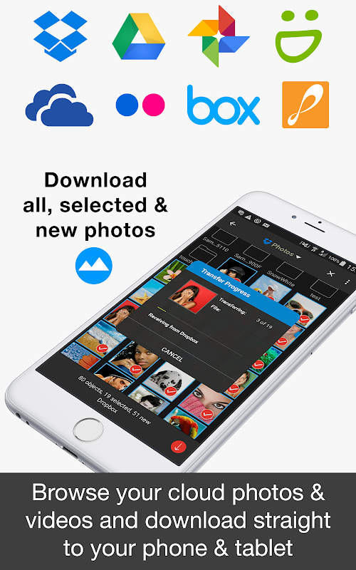 นำเข้ารูปภาพและวิดีโอที่จัดเก็บไว้ในบริการคลาวด์และรูปภาพที่คุณชื่นชอบโดยตรงไปยังโทรศัพท์และแท็บเล็ต Android ของคุณผ่าน WiFi และ 3G / LTE บริการที่รองรับ: