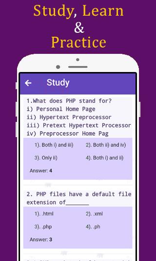 ข้อมูล PHP quiz app questions,Practic APK
