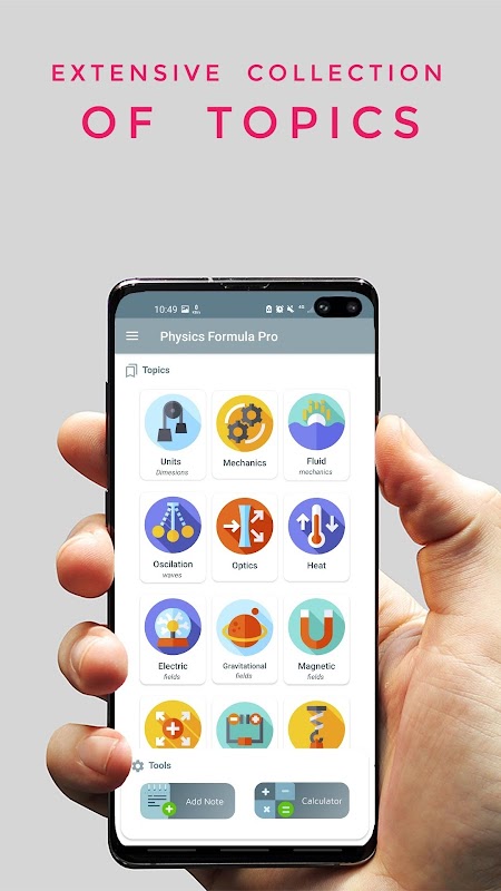 Physics formula pro เป็นแอปสูตรล่าสุดสำหรับ Android สำหรับฟิสิกส์ แอพนี้มี 14 หัวข้อฟิสิกส์รวมถึง