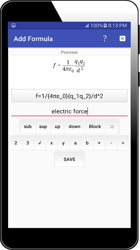 คุณสามารถอ่านรายการใหญ่ของสูตรฟิสิกส์จากนี้ app.Also คุณสามารถเขียนสูตรของคุณและบันทึกลงในแอปนี้