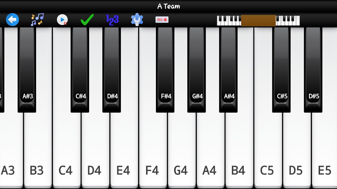 กำหนดขนาดของคีย์บนเปียโน ยิ่งคีย์ใหญ่ ยิ่งจดบันทึกที่ถูกต้องแม่นยำมากขึ้น คุณก็จะเห็นคีย์ทั้ง 3 อ็อกเทฟบนหน้าจอที่มีขนาดเล็กลง