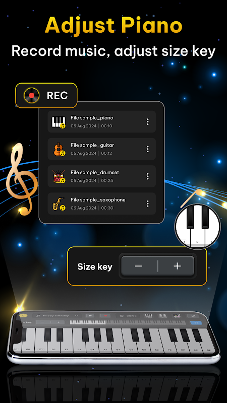 👇 **ปรับขนาดและความเร็วของคีย์บอร์ด**: ปรับขนาดคีย์บอร์ดและความเร็วในการเล่นให้ตรงกับความต้องการของคุณ