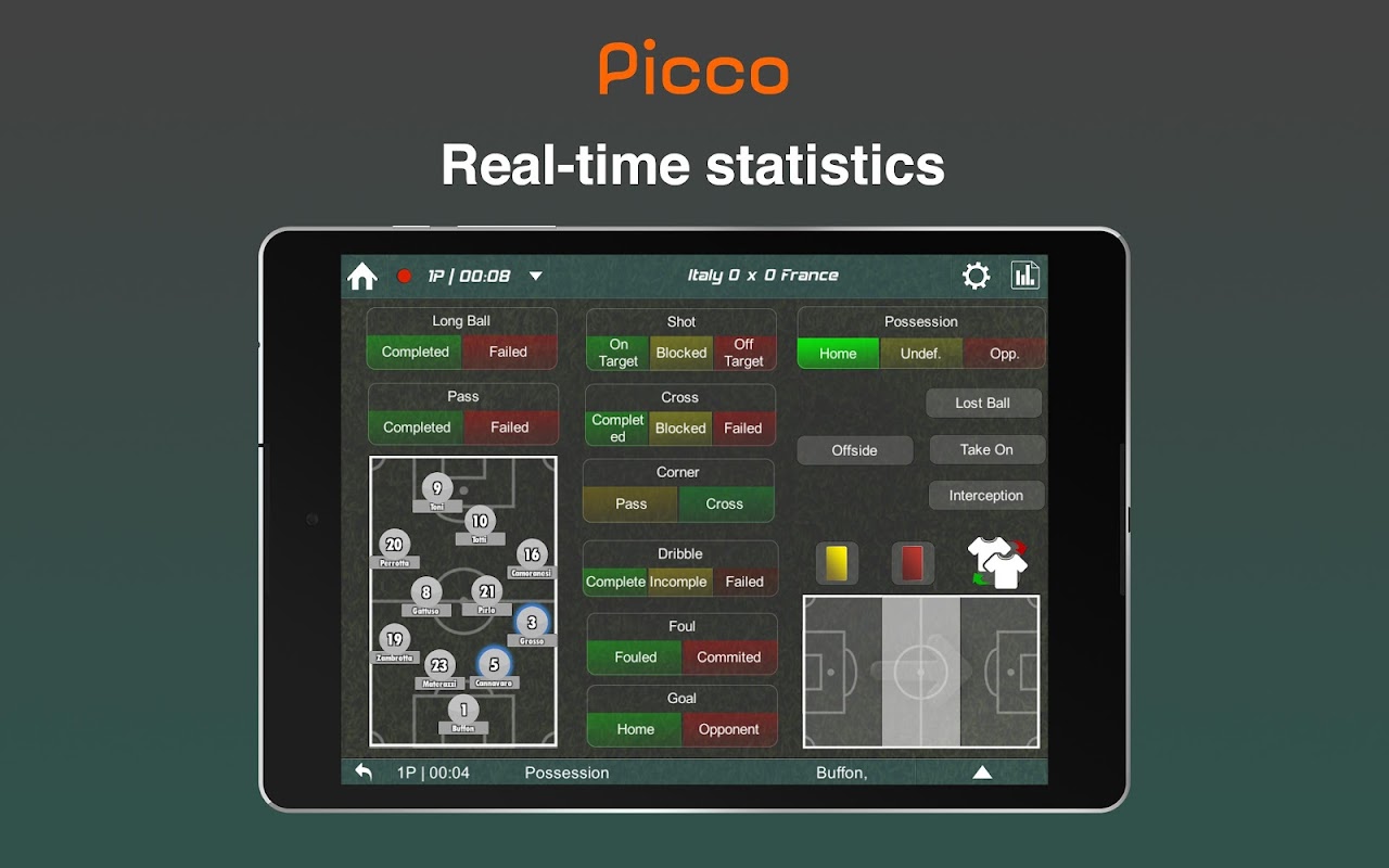 ถ้าคุณคิดว่ามันไม่สามารถทำได้แบบเรียลไทม์ใช่มันทำได้มันค่อนข้างง่าย Picco มีโซลูชันที่ใช้งานง่ายและมีประสิทธิภาพซึ่งเราเรียกโปรโตคอลว่าคุณต้องการระบุว่าอะไรและอย่างไร Picco ทำให้การโต้ตอบระหว่างการกระทำเป็นไปโดยอัตโนมัติดังนั้นคุณไม่จำเป็นต้องให้ความสนใจกับแอปทั้งหมด จากนั้นรายงานที่เกี่ยวข้องจะถูกสร้างขึ้นโดยอัตโนมัติ Picco มาพร้อมกับการตั้งค่าโปรโตคอลสองแบบสำหรับฟุตบอล (ฟุตบอล) ซึ่งคุณมักจะเห็นในการออกอากาศแบบจับคู่และแบบขั้นสูงพร้อมสถิติระดับผู้เล่น