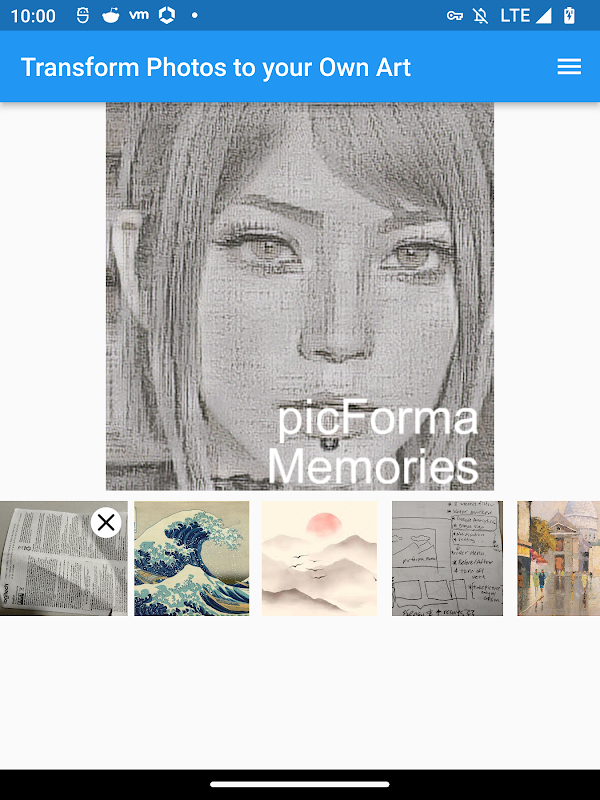 คุณสามารถอัปโหลดรูปภาพเป็น "ฟิลเตอร์" ของ AI หรือเลือกจาก "ฟิลเตอร์" ของ AI ที่ให้มาบนแอปของเรา ถ่ายภาพใหม่หรือเลือกภาพถ่ายจากโทรศัพท์ของคุณ ใช้ฟิลเตอร์ AI ของคุณเพื่อแปลงภาพถ่ายของคุณให้เป็น AI Art ที่ปรับแต่งในแบบของคุณเอง ซึ่งเป็นของคุณเอง รวดเร็ว ง่าย สนุก และฟรี!
