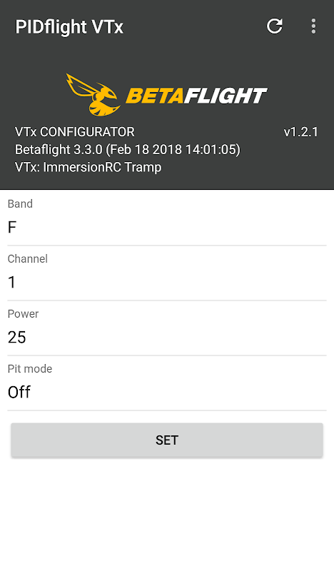 PIDflight VTX มีอินเตอร์เฟซที่เรียบง่ายในการปรับ TrampHV หรือ TBS Unify การตั้งค่าเครื่องส่งสัญญาณวิดีโอ Pro เช่นวงช่องทางพลังงานและโหมดหลุมของคุณ