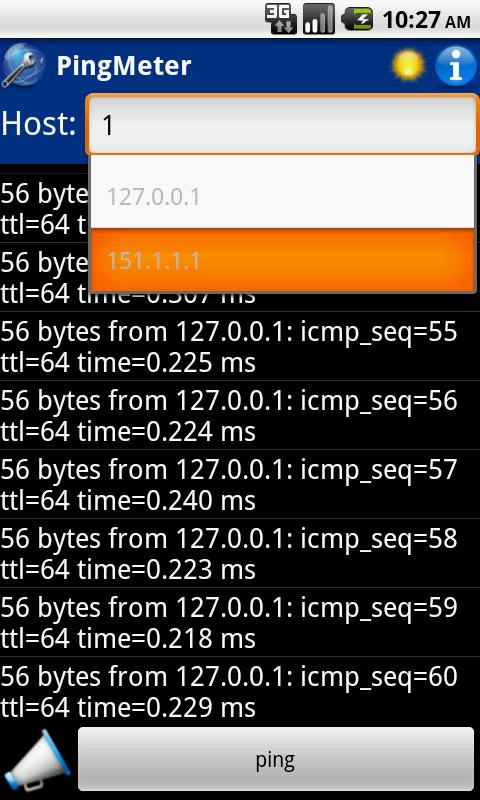หมายเหตุ: PingMeter ขึ้นอยู่กับคำสั่ง ping บนโทรศัพท์ของคุณนี้จะต้องปฏิบัติการเพื่อช่วยให้ PingMeter เพื่อให้ทำงานได้ มักจะมีปัญหาไม่กระทำของผู้ใช้ไม่จำเป็นต้องมี แต่บางส่วนของผู้ขาย (หรือปล่อย Android) สามารถปิดการใช้งาน ping ไปยังผู้ใช้ปกติ (ที่ไม่ใช่ราก) นี้ไม่ได้เกิดจาก PingMeter และสามารถ \ 't แก้ไขข้อ จำกัด ขอโทษ