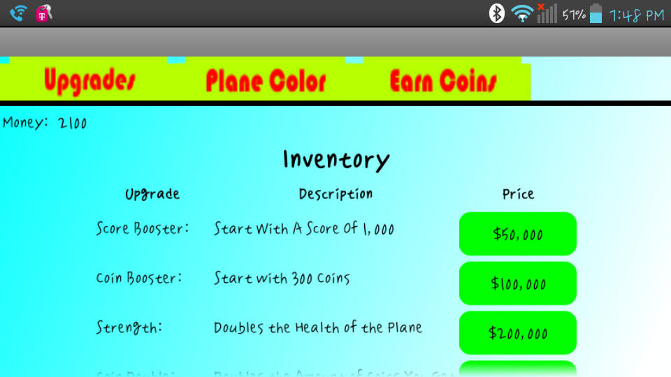 This is a semi-platformer game where you control a plane that flies through a variety of objects. You move the plane up and down to avoid objects and collect gas to stay alive. You have 5 lives and different objects cause different amounts of damage. While you are playing, you main objective is to collect as many coins as possible to unlock boosters and plane colors.