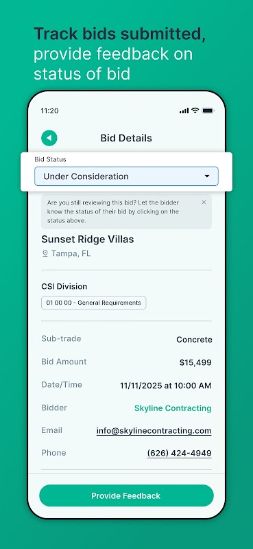 ด้วยแอปมือถือ PlanHub ผู้รับจ้างทั่วไปสามารถโพสต์การอัปเดตโครงการ อัปโหลดเอกสาร ตรวจสอบการเสนอราคา และสร้างเครือข่ายกับและส่งข้อความถึงผู้รับเหมาช่วงและซัพพลายเออร์วัสดุ