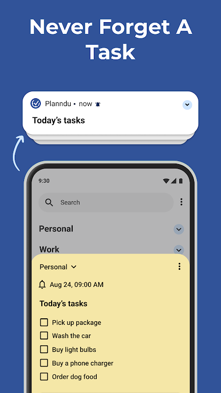 Planndu คือแอปวางแผนงานที่ช่วยให้คุณมีสมาธิมากขึ้น เพิ่มประสิทธิภาพการทำงาน และจัดระเบียบสิ่งต่างๆ ในแต่ละวัน วางแผนวันของคุณ จัดระเบียบโน้ต และติดตามเป้าหมายของคุณด้วย Planndu