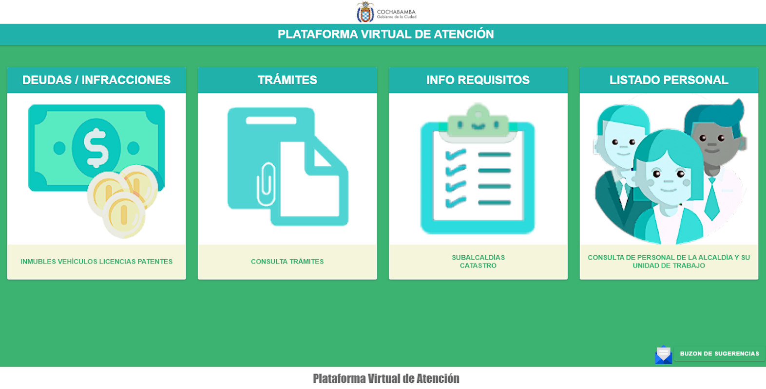 Aplicación de consulta de información de deudas por conceptos de sitios, patentes, impuestos de vehículos. Información de situación actual de trámites. Información respecto a empleados con cargos jerárquicos. Guía de procesos para trámites, incluyendo flujograma de procesos. Mapeo de las subalcaldías del municipio.