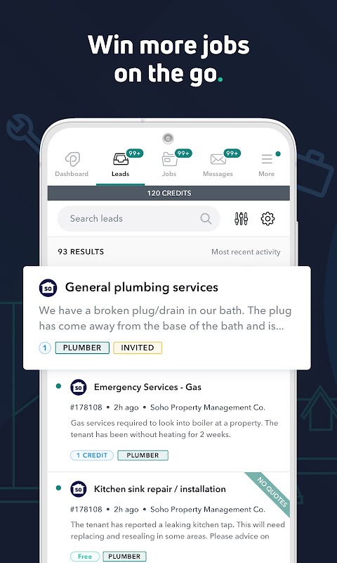 คุณลักษณะของเราช่วยให้คุณได้งานมากขึ้น สื่อสารกับลูกค้า จัดการขั้นตอนการทำงาน และรับเงินทั้งหมดในที่เดียว แอพ Plentific ช่วยให้งานของคุณง่ายขึ้นโดยเสนอราคาที่ถูกต้อง ออกใบแจ้งหนี้ง่าย ๆ และชำระเงินเร็วขึ้น เพื่อให้คุณสามารถมุ่งเน้นไปที่สิ่งที่คุณทำได้ดีที่สุดและให้บริการที่เป็นเลิศต่อไป แพลตฟอร์มของเราทำงานบนทุกอุปกรณ์